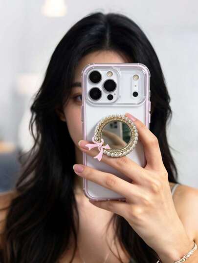 | Color | Pearl Rhinestone Pink Bow Mirror Stand Phone Case |