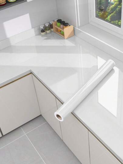 1 件亮面白色厨房防油贴纸耐高温防水防霉瓷砖墙贴自粘橱柜贴纸桌面大理石纹膜用于翻新、贴纸、墙贴花、乙烯基贴花用于家居装饰、春季装饰品让您的家焕然一新、拉玛装饰贴纸 - 白色 - 查看 13