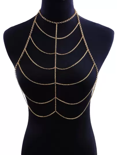1 件金色身体链、性感胸链、沙滩珠宝 - 金黃色 - 查看 1
