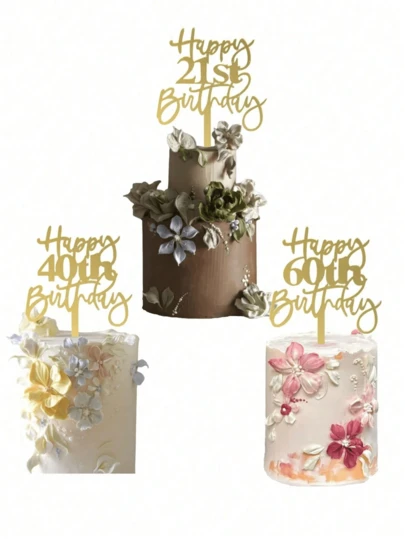 1件金色“生日快乐”蛋糕装饰套装 - 生日派对蛋糕装饰 | 蛋糕插牌 | 烘焙用品 | 烘焙装饰 | 蛋糕配件 | 厨房必备 | 派对礼品,适用于18岁、21岁、30岁、40岁、50岁生日