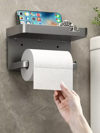 1個灰色掛壁式紙巾盒(無需鑽孔固定),家庭浴室、廚房、手巾收納必備 - 灰色 - 查看 1