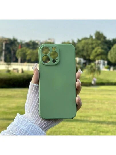 1个绿色液态硅胶双层绒内衬手机壳,简约防摔,兼容 15 Pro Max、三星A14、红米手机,国际版,非国内版