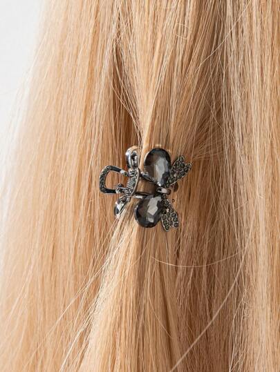 1 件青銅色萊茵蝴蝶結金屬髮夾適合女士高髻、側髮或瀏海 - 槍黑色 - 查看 1