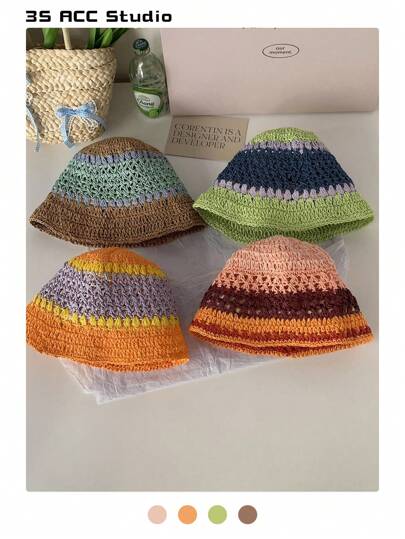 1 件女士手工编织镂空草帽,夏季防晒海滩度假遮阳帽,透气渔夫帽,修饰脸型 - 草編漁夫帽 - 查看 24