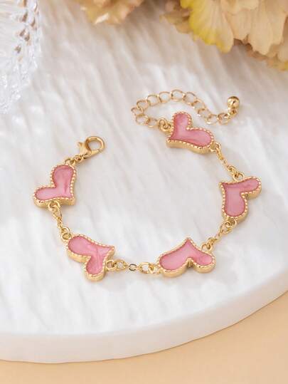 1件手工粉色滴油心形手链,浪漫温柔的女士礼物,情人节佳选 - 粉色 - 查看 1