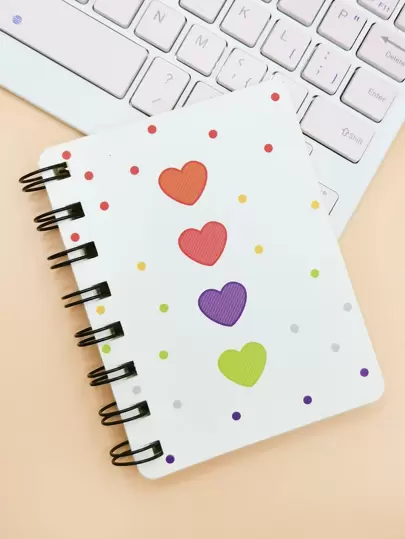 1入組心和波點圖案綫圈筆記本 - 彩色 - 查看 1