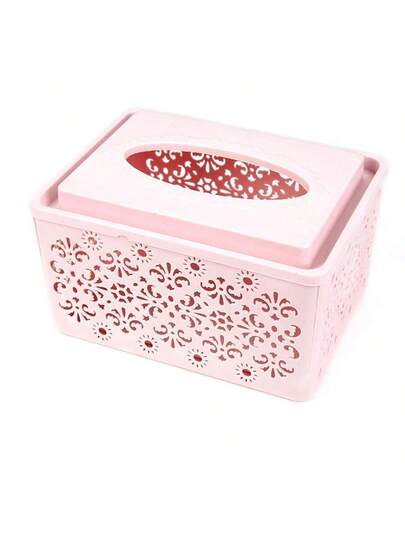 1個中空塑料紙巾盒封面,適用於家居客廳,矩形面紙容器 - 粉色 - 查看 1