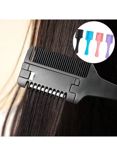1 件家用理发梳,带毛发修剪刀片,双面修剪梳,可更换刀片,用于修剪刘海、稀疏头发、梳理头发、修剪分叉 - 彩色 - 查看 1