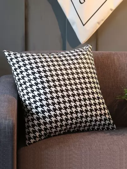 1入組千鳥格圖案現代超細纖維裝飾抱枕套 - 黑與白 - 查看 1