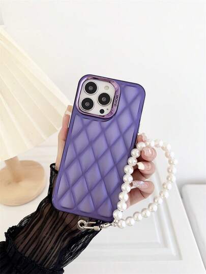 1入IMD珍珠鏈&電鍍按鈕&電鍍相機框抗摔、防汗、防指紋、耐磨、不掉色的手機殼,兼容iPhone - 紫色 - 查看 1