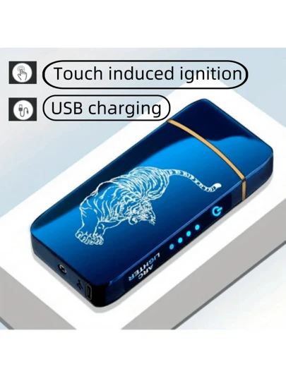 1入組智能感應防風雙弧電子打火機,便攜式usb充電打火機 - 藍色 - 查看 1