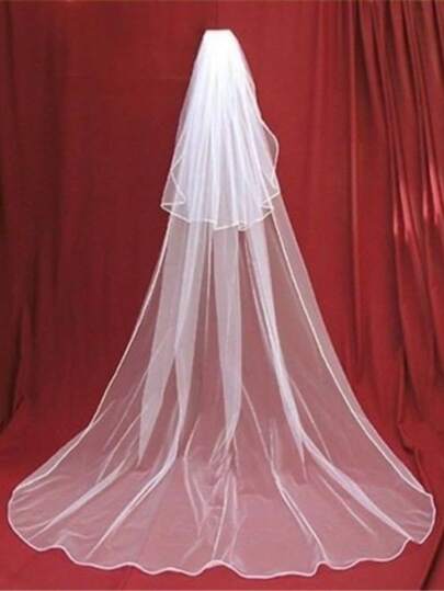 1 件象牙色长款极简主义纯色薄纱简约新娘面纱秋季女士服装 - 象牙白色 - 查看 1