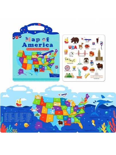 1本果凍安靜書,早期教育&家長子女互動美國地圖貼紙書 - 彩色 - 查看 1