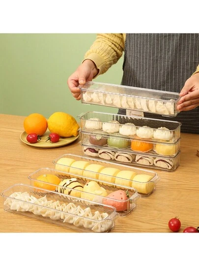 1入廚房冰箱冷凍機窄縫可堆疊透明餃子收納盒 - 無色 - 查看 1