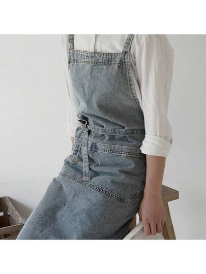 1 件韩式厚棉帆布牛仔围裙,防污家用厨房工作制服围兜,咖啡师围裙 - 彩色 - 查看 1