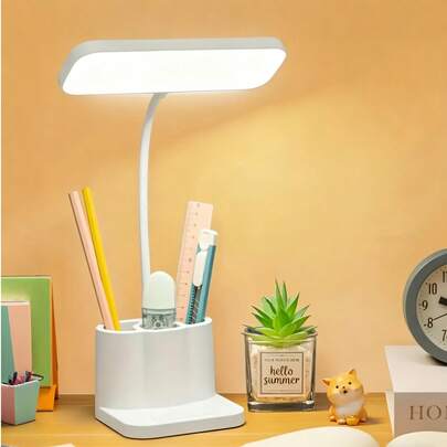 1个LED台灯,带3个笔筒,USB充电,3档亮度调节,护眼白光,学生学习灯,宿舍书桌灯,卧室床头阅读灯