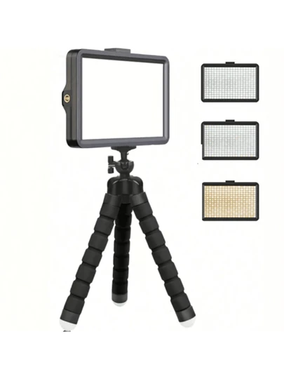 1入組led視頻燈攝影自拍調節面板照明燈,三種顏色,帶三腳架 - 黑色 - 查看 1