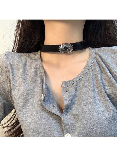 1入款女士黑色pu皮項圈朋克&嘻哈風情項鍊,適合日常配戴
