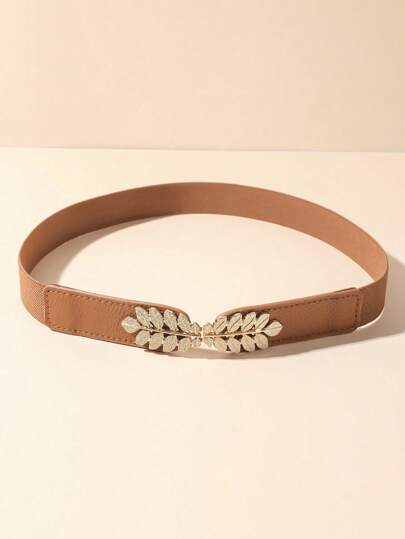 1 件女士驼色弹性腰带,带叶扣,优雅夏季、秋季、万圣节