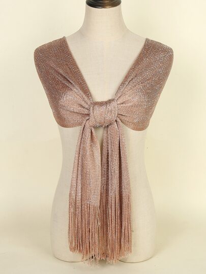 1入組女士們時尚金色線流蘇圍巾披肩適合派對,蒐集,和日常穿著 - 香檳色 - 查看 2