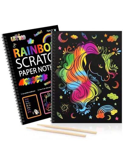 1本大型刮畫畫冊,diy、彩色繪畫和塗鴉,拼圖刮紙,適用於生日派對和節日,易於繪畫的工具 - 黑色 - 查看 1