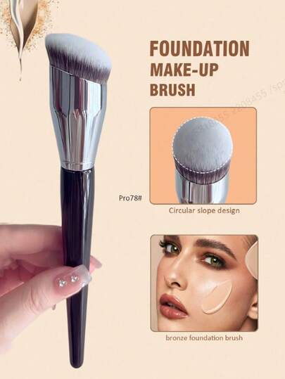 1支大号圆形斜角化妆刷,专业合成毛刷,适用于粉底、遮瑕、腮红、散粉等。 - 黑色 - 查看 14
