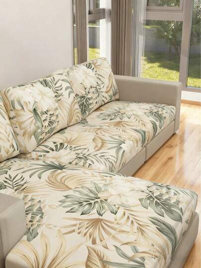 1件装树叶印花沙发靠垫套,现代热带树叶印花沙发座垫套,适合家庭使用 - 彩色 - 查看 1