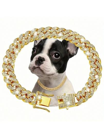 1入組鏈式鑲鑽項鍊,寵物項圈頸鏈,嘻哈風格貓裝飾鏈,狗頸鍊 - 彩色 - 查看 24