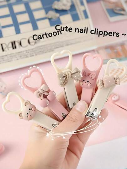 1个爱心卡通造型指甲钳,迷你防溅折叠家用指甲修剪器,指甲修剪器,情人节礼物