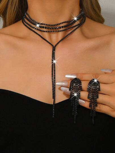 一件奢华优雅的多层流苏项链,镶嵌闪亮水钻,新娘必备,精致配饰,适合宴会和婚礼,创意礼物