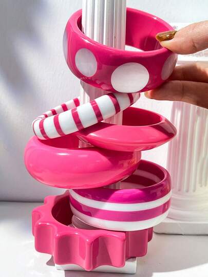 1件奢华镂空花朵手镯,玫瑰粉色多元素串珠设计,适合女性日常佩戴,是送给朋友和母亲的理想珠宝礼物。
