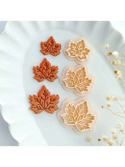 1 件枫叶形复古软粘土耳环模具,DIY 手工粘土耳环工艺工具 - 杏色 - 查看 4