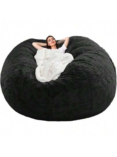 1 件记忆泡沫豆袋,大号成人豆袋椅,蓬松沙发,适用于客厅、卧室、宿舍,仅豆袋套,无填充物 - 黑色 - 查看 1