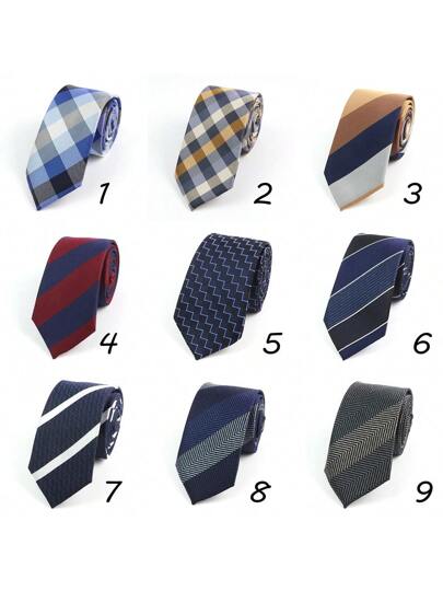 1 件男士商务正装格子条纹细领带 2.4 英寸,适合工作、日常穿着、婚礼、派对男士领带 - 彩色 - 查看 1