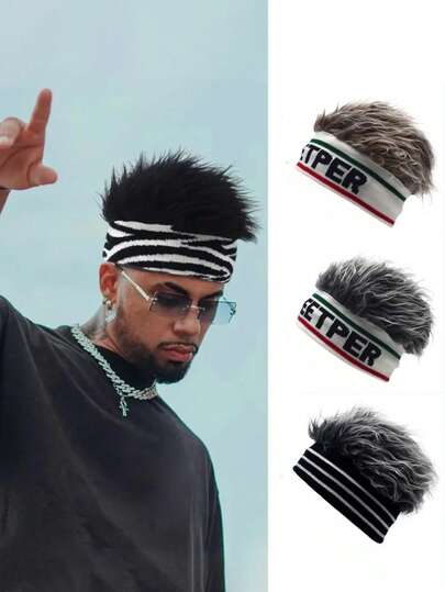 1 件装男女款尖刺假发骑行运动帽舒适针织趣味嘻哈舞会短款甜瓜假发骷髅帽 - 彩色 - 查看 7