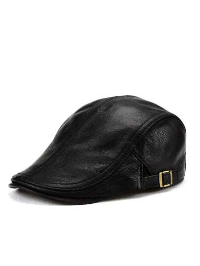 1顶男士黑色PU皮贝雷帽,时尚复古绅士帽,冬季保暖防风报童帽,百搭休闲四季驾驶帽,适合日常佩戴 - A - 查看 10