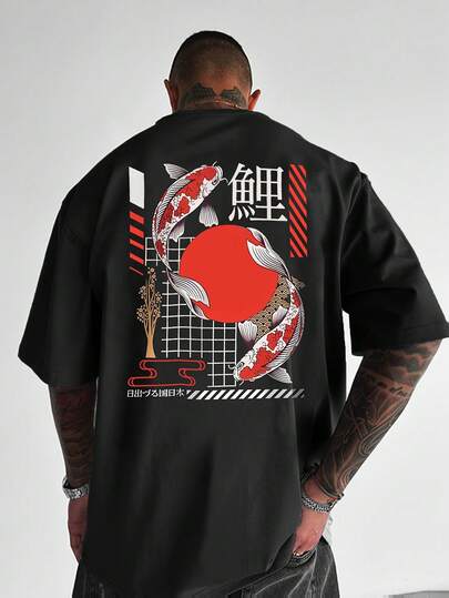 男士时尚印花宽松短袖T恤一件装 | 精致设计 | 夏季必备 | 易于搭配,展现您的风格 - 黑色 - 查看 3