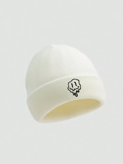1 件男士针织帽,带有刺绣卡通表情,适合日常穿着街头万圣节骷髅帽秋季装 - 白色 - 查看 1