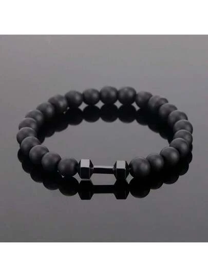 1 件男士哑光串珠哑铃手链 - 时尚健身风格手链礼物,展现个性化和力量,非常适合健身装备和休闲装 - 樣式1 - 查看 1