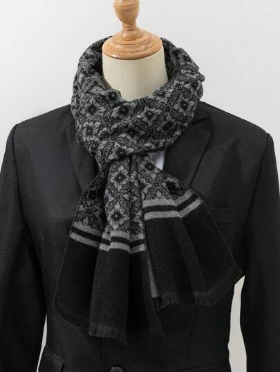 1條男式黑灰色格紋帶流蘇的圍巾 - 黑色 - 查看 1