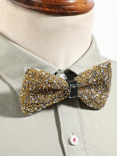 1件男士水钻领结 - 预系亮片领结,长度可调节,宝石领结,时尚百搭,适合派对 - 黃色碎鑽 - 查看 5