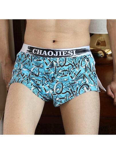 1 件男士時尚透氣平角短褲,包括寬鬆版型全身頭像印花,大尺寸,舒適內衣 - 青碧色 - 查看 1