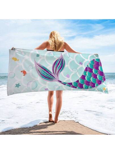 1條美人魚圖案超細纖維輕量海灘浴巾,75*150CM浴巾,適用於海灘、游泳、瑜伽、健身、露營,男女兒童皆宜,是海灘度假必備的好物,也是假期送禮的絕佳選擇 - 彩色 - 查看 1