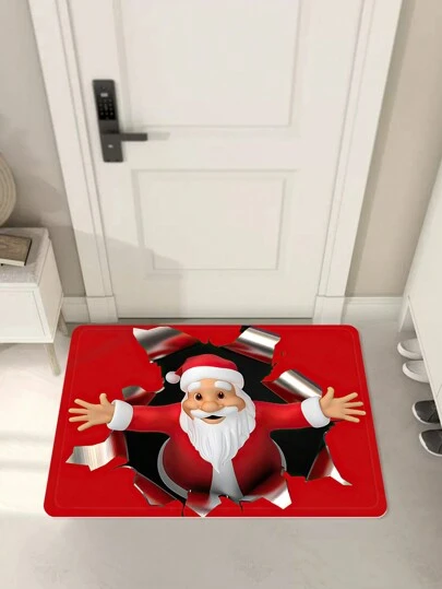 1 件圣诞快乐和圣诞老人突破红色纸质图案防滑浴室卧室地垫、门垫、装饰性功能地毯家居浴室装饰浴室地毯户外地毯门垫秋季装饰浴室配件返校入口装饰 - 彩色 - 查看 1