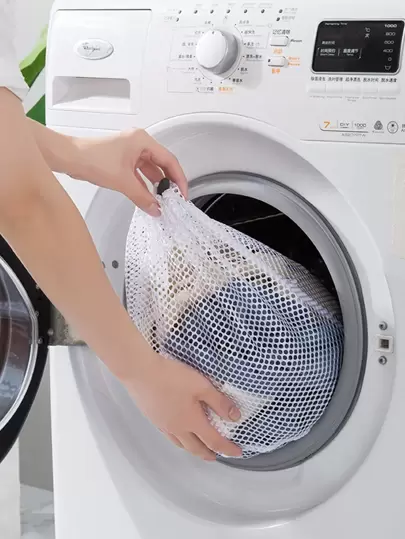 1 件带抽绳的网眼洗衣袋,白色涤纶大号洗衣机袋,适用于浴室正装裤子鞋子牛仔裤靴子裙子,春季,极简主义,夏季上衣 - 白色 - 查看 1