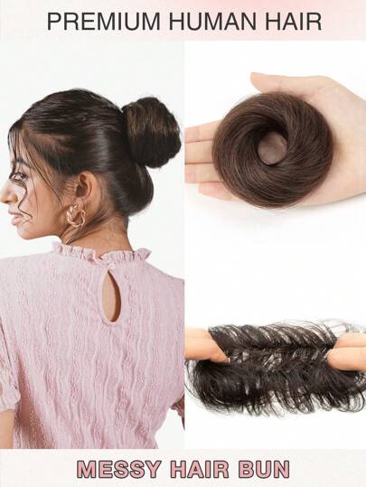 1件套凌乱发髻假发片,采用真人发丝波浪卷发制成,可打造甜甜圈式优雅发髻,配有弹性橡胶发圈,方便佩戴。