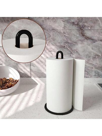 1 件金属黑色/银色厨房纸巾收纳架,铁涂层创意餐桌卷纸架,垂直包装膜纸巾分配器 - 拆卸款-推薦 - 查看 1