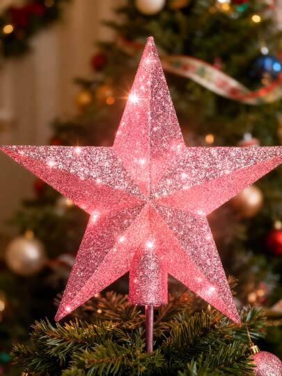 1个迷你圣诞树装饰品,粉色圣诞树顶星配件,闪亮3D伯利恒树挂饰,防水节日圣诞树顶星装饰,适用于室内外家居(不含电池)圣诞装饰家居圣诞礼物圣诞装饰品 - 彩色 - 查看 11