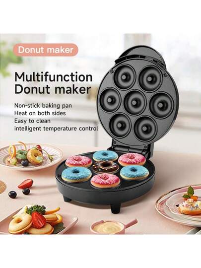 HONGMEI 迷你甜甜圈机,适用于早餐、小吃、甜点,不粘涂层,1000瓦功率,一次可制作7个5厘米的可爱甜甜圈,厨房电器,甜甜圈/华夫饼机