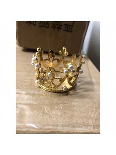 1个迷你珍珠装饰公主皇冠蛋糕装饰插牌,适用于生日烘焙装饰